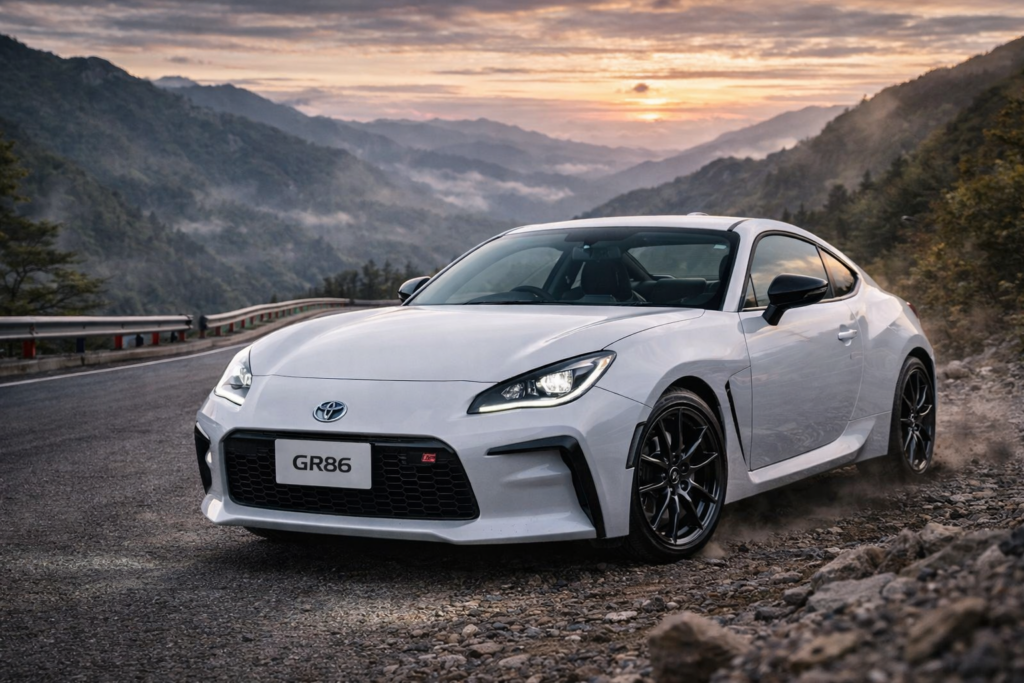 GR86は、FRレイアウトを採用した本格スポーツカーで、運転の楽しさをダイレクトに味わえるMT車です。低重心で安定したコーナリング性能が特徴で、初心者でも扱いやすく、ステップアップにも最適な1台です。